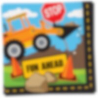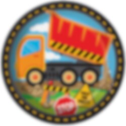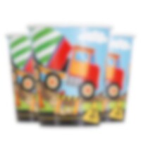 8 papieren bordjes met cool motief van een grote vrachtwagen die modder stort op een bouwplaats met verkeersborden. Deze bordjes zijn perfect om te serveren aan de persoon die geen genoeg kan krijgen van voertuigen.
