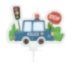 Leuke taartkaarsje in de vorm van een politieauto, perfect als prachtige versiering op de taart voor een kinderfeestje met een politiethema. De kaarsje is 8 cm hoog.