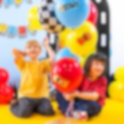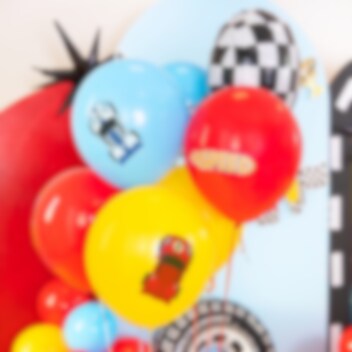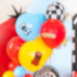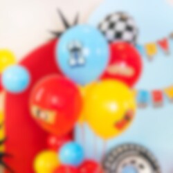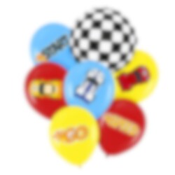 Zet het feest op volle toeren met deze spannende Racing Car-ballonnen! Het set bevat 6 latexballonnen in rood, geel en blauw met coole racewagens en teksten zoals START, GO en SPEED, plus een stijlvolle zwart-wit geblokte folieballon die het feest naar de finish brengt.