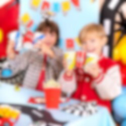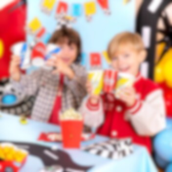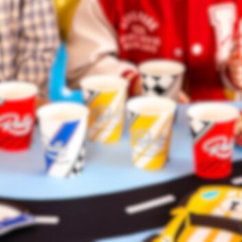 6 bekers met een spannend Rally Championship-motief in geel, wit en rood. Perfect als je een uniforme en leuke tafelschikking wilt voor het feest met Racing Car-thema.