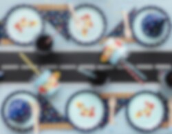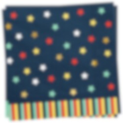 12 mooie servetten met sterrenmotief tegen een blauwe achtergrond en kleurrijke strepen. Uitstekend om op te dienen bij je kinderfeestje met vliegthema. Stem graag de servetten met andere leuke tafelaccessoires en decoraties van het thema. De servetten hebben 2 lagen en zijn ongevouwen 33 x 33 cm.