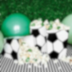 6 leuke popcornbakjes in voetbalthema. Perfect om te vullen met lekkere hapjes en uit te delen aan gasten op kinderfeestjes en feestjes. De bakjes zijn van karton en zijn 12 cm hoog en 7 x 7 cm aan de onderkant.