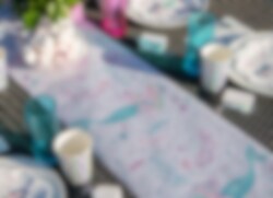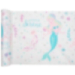 Creëer een magische setting op je zeemeerminfeestje met deze tafelloper met motieven van grote en kleine zeemeerminnen en andere zee-gerelateerde dingen. Past perfect bij onze andere accessoires in hetzelfde zeemeerminthema, zoals bordjes, bekers en servetten.