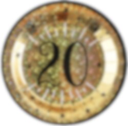 10 glinsterende borden in goud met het getal '20' in zwart. Deze borden zijn mooi en perfect om te gebruiken voor het 20-jarig feest. De borden zijn gemaakt van papier en hebben een diameter van 22,5 cm.