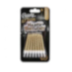Deze set bevat 16 taartkaarsen in goud en een bijpassend bord met de tekst Happy Birthday. De taartkaarsen zijn 8 cm hoog en zijn perfect om een sfeervolle elegantie aan de taart toe te voegen en maken de viering nog gedenkwaardiger.