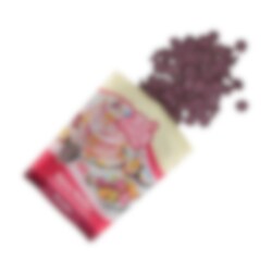 Ingrediënten: suiker, gehydrogeneerd plantaardige vet (palmpit), melkpoeder (mager), concentraat (rode bietensap), emulgator: E492, E322 (zonnebloem), kleurstof: E153, E160a. Voor allergenen, zie de vetgedrukte ingrediënten. Kan sporen bevatten van: noten. Dit product is Halal gecertificeerd.