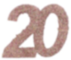 6 glinsterende grote confetti in roségoud om te decoreren op het 20-jarig feest. De confetti heeft de vorm van het getal '20' en is 6 x 6 cm groot. Ze zijn gemaakt van papier.