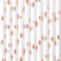10 st. mooie papieren rietjes in wit en met motieven van schattige roségouden harten. Super leuk om te gebruiken voor je kinderfeestje, babyshower of een andere feestelijke gelegenheid. Mooi om te stemmen met andere feestaccessoires die in roségoud zijn verijdelde. De rietjes zijn ongeveer 19,5 cm lang.