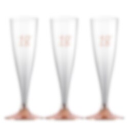 6 stuks mooie en praktische wegwerpglazen in champagnestijl. De plastic glazen zijn leuk om zowel de tafel mee te dekken als om mee te mengen met je gasten op het 18e verjaardagsfeest. De glazen hebben een inhoud van 14 cl en staan op een voet van roségoud met het getal '18' bovenaan gedrukt.