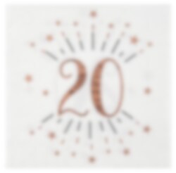 10 witte servetten met roségoud glitterpatronen en het getal '20'. Deze servetten zijn erg decoratief als je een tafel dekt voor een 20-jarig feest. De servetten hebben drie lagen en voelen luxe aan. Uitgevouwen hebben ze een afmeting van 16,5 x 16,5 cm.