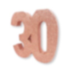 Zeer mooie en indrukwekkende tafeldecoratie die schittert in roségoud. De decoratie is gevormd als het getal '30' en wordt het middelpunt van je gedekte tafel voor de 50ste verjaardag. De decoratie is 19,5 x 20 cm groot.