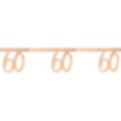 Decoratieve slinger van karton in glanzende roségoudfolie met het getal '60'. De slinger is een uitstekende decoratie voor je 60-jarige feest. Elk getal is 18 x 23 cm groot en de slinger zelf is 250 cm lang.
