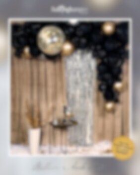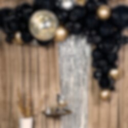 Heerlijke ballonboog in zwart- en goudtinten die je zelf bouwt. Een werkelijk indrukwekkende decoratie die geschikt is voor kinderfeestjeen, feestjes of bruiloften. Het pakket bevat in totaal 78 stuks ballonnen in verschillende maten en accessoires. De ballonnenboog is ongeveer 5 meter lang.