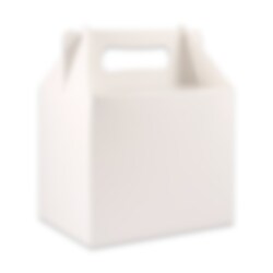 Witte feestbox met een handvat dat gemakkelijk opvouwbaar is. Perfect om snoepjes en verrassingen in te stoppen voor het kinderfeestje of feestje. De box is gemaakt van karton en is ongeveer 15 cm lang, 10 cm breed en 12 cm hoog. De feestboxen worden per stuk verkocht.