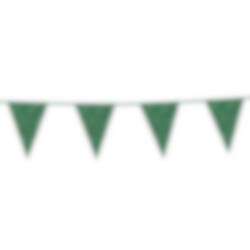 Vlaggenlijn van karton in een sprankelende groene kleur die op elk kinderfeestje of feestje een passende decoratie zal zijn. De slinger is ongeveer 6 meter lang.