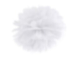 Pompon in wit die je kunt ophangen in de feestzaal. De pompon is gemaakt van papier en is ongeveer 25 cm in doorsnee. Meng gerust verschillende kleuren om een leuke decoratie te creëren.