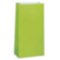 Set van 12 limegroene papieren uitdeelzakjes, ideaal om te vullen met snoepjes, kleine cadeautjes of traktaties. Perfect voor kinderfeestjes of themafeesten. De zakjes zijn ca. 25 × 13 cm groot.