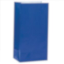 Set van 12 donkerblauwe papieren uitdeelzakjes, ideaal om te vullen met snoepjes, kleine cadeautjes of traktaties. Perfect voor kinderfeestjes of themafeesten. De zakjes zijn ca. 25 × 13 cm groot.