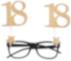 Leuke brillen om te dragen op je 18ste verjaardag om het feest een beetje leuker te maken. De bril is 15 x 16 cm groot en is gemaakt van plastic.