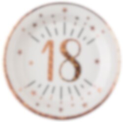 10 mooie bordjes die schitteren in roségoud met het getal '18' in het midden. Deze bordjes zijn schattige en perfect om te gebruiken voor het 18-jarig feest. De bordjes zijn gemaakt van karton en hebben een diameter van 22,5 cm.