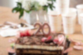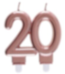 Taartkaars in roségoud, elegant gevormd als het getal '20'. De taartkaars heeft een afmeting van 7,5 x 9 cm.