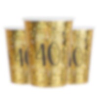 Combineer je tafelschikking graag met andere chique tafelschikkingaccessoires in een 40-jarig thema. Kijk rond in onze categorie voor 40-jarige feesten om meer inspiratie op te doen. Naast tafelgerei vind je ook veel mooie decoraties in goudkleur. Een tip is om te stemmen met decoraties in zwart omdat het past bij de stijl van de bordjes.
