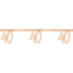 Decoratieve slinger van karton in glanzende roségoudfolie met het getal '40'. De slinger is een uitstekende decoratie voor je 40-jarige feest. Elk getal is 18 x 23 cm groot en de slinger zelf is 250 cm lang.