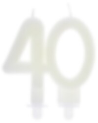 Taartkaars die elegant schijnt in het donker in de vorm van het getal '40'. De taartkaars heeft een afmeting van 7,5 x 9 cm.