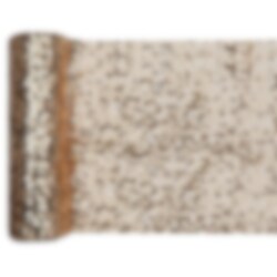 De tafelloper is ongeveer 19 cm breed en 3 meter lang en is gemaakt van polyester. De pailletten zijn gemaakt van plastic.