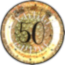 10 glinsterende borden in goud met het getal '50' in zwart. Deze borden zijn mooi en perfect om te gebruiken voor het 50-jarig feest. De borden zijn gemaakt van papier en hebben een diameter van 22,5 cm.