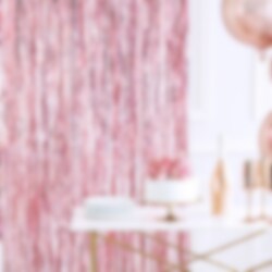Deurgordijn in een prachtig glinsterende roségouden kleur. Een chique decoratie om in een deuropening of aan de muur te hangen voor het kinderfeestje, feestje of babyshower. Het deurgordijn is ongeveer 90 x 250 cm groot. Houd er rekening mee dat tape of iets dergelijks om de decoratie te bevestigen niet wordt meegeleverd.