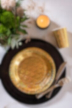10 st. heerlijke holografische papieren bordjes die glinsteren en schitteren in goud. De bordjes zijn ongeveer 22.5 cm groot.