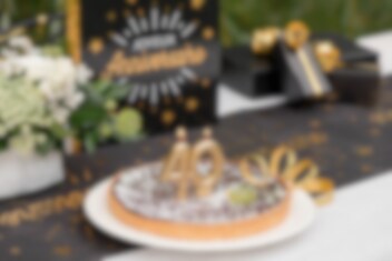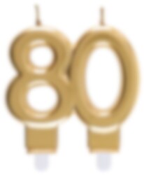Taartkaars in goud, elegant gevormd als het getal '80'. De taartkaars heeft een afmeting van 7,5 x 9 cm.