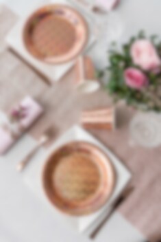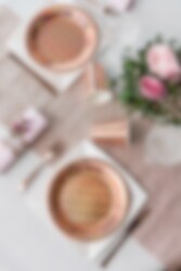 Sprankelende tafellopers in roségoud om op tafel te hebben als het tijd is voor een feestje. De tafelloper is 28 breed en 3 meter lang en is gemaakt van polyester.