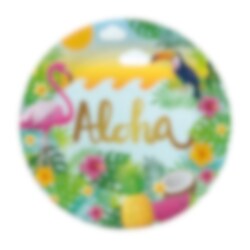 Dek de tafel voor een zomerfeest met deze kleurrijke borden in Aloha-thema. De levendige afbeelding met flamingo, toekan, bloemen, palmbladeren, ananas, kokosnoot en watermeloen creëert een heerlijke tropische sfeer die perfect past bij een Hawaï kinderfeestje, poolparty of andere feestelijke gelegenheden in zomerse stijl.