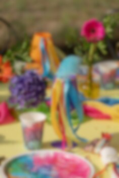 Kleurrijke bekers die perfect zijn voor een kinderfeestje, feest of andere vieringen waarbij de tafeldecoratie eruit mag springen. Het levendige patroon in heldere tinten roze, paars, blauw en oranje creëert een expressieve indruk, terwijl de glanzende gouden details een extra elegante touch geven.