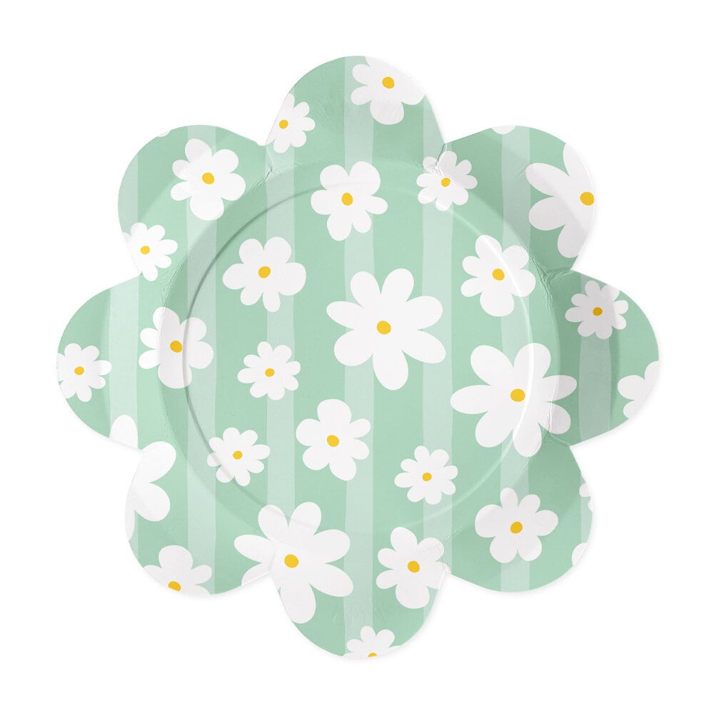 Dek de tafel voor een zomers en charmant feest met deze mooie bordjes in bloemvorm. De bordjes zijn uitgevoerd in zachte pastelkleuren zoals roze, blauw en groen en zijn versierd met witte madeliefjes, waardoor ze een leuke toevoeging zijn voor een verjaardag, babyshower, picknick of zomerfeest.