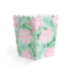 Serveer popcorn, snacks, snoep of andere kleine lekkernijen in deze zomerse popcorn bakjes met een tropische afbeelding. Met groene bladeren, roze bloemen en de tekst Happy Summer Time zijn ze een kleurrijk detail op de feesttafel en perfect voor een zomerfeest, poolparty, Hawaï kinderfeestje of picknick in de zon.