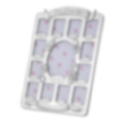 Förkromad fotoram med babyrelaterade motiv samt texten "My first year". En fin dopgåva som föräldrarna sedan kan använda för att spara foton på barnet från alla månader under första året.