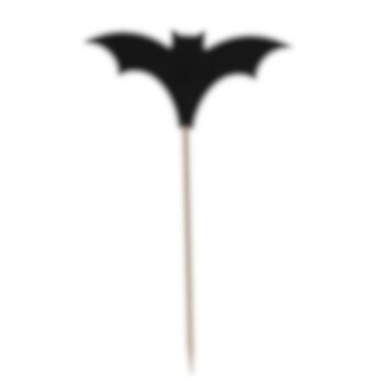 Breng de sfeer van je Halloweenviering op smaak met deze caketoppers in de vorm van een vleermuis. De set bevat 12 stuk toppers gemaakt van papier op een houten stok, perfect om muffins of taart te versieren.