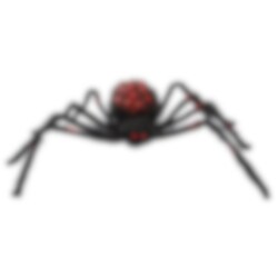 Maak je Halloween extra griezelig met deze grote enge spin! De zwarte romp is bedekt met kleine rode spinnetjes en de lange, buigzame poten maken het gemakkelijk om hem op de vloer, meubels of aan het plafond te plaatsen. Een opvallende decoratie!