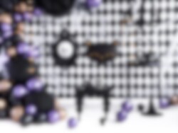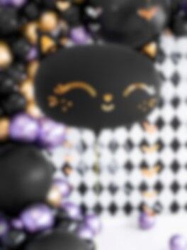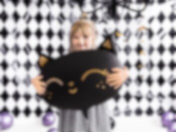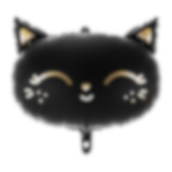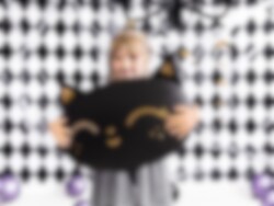 Folieballon van een matzwarte kat met verijdelde gouden details. Een schattige decoratie om op te blazen voor het kinderfeestje of Halloweenfeest. De ballon is opgeblazen ongeveer 48 x 36 cm en kan met lucht of helium worden opgeblazen.