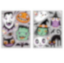 Speelse stickers met verschillende Halloween motieven. Elke verpakking bevat ongeveer 11 stickers op een vel. Let op, ze worden ongesorteerd verkocht en de afbeelding toont de twee beschikbare varianten.