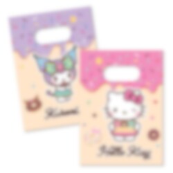 4 uitdeelzakjes van papier in mooie kleuren met schattige afbeeldingen van Hello Kitty en Kuromi. Perfect om te vullen met snoep, kleine speeltjes of leuke verrassingen die de kinderen mee naar huis kunnen nemen na het kinderfeestje.