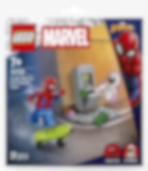 Spider-Man op een skateboard in actie tegen Anti-Venom! De Spider-Man tegen Anti-Venom overval (30725) is een spannende kleine Marvel-set met een Spider-Man minifiguur en een Anti-Venom figuur. 35 onderdelen voor stoer superheldenspel voor Marvel-fans vanaf 7 jaar.