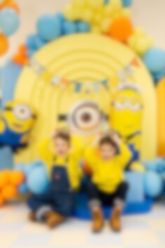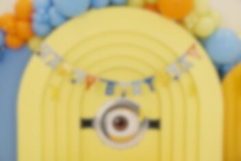 Slinger van karton met kleurrijke letters en vrolijke Minions-afbeeldingen die samen de tekst "Happy Birthday" vormen. Een speelse en opvallende decoratie die perfect is om op te hangen aan de muur, boven de feesttafel of in de deuropening voor een feestelijke sfeer.