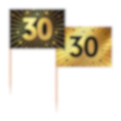 Vier de 30e verjaardag in stijl. Deze feestelijke party picks in zwart en goud zijn perfect als decoratie voor cupcakes, hapjes, taart of andere lekkernijen op het buffet.