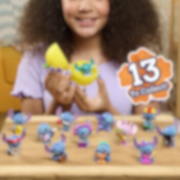 Open het ananasvormige ei en ontdek welke figuur erin verstopt zit! Elk ei bevat een ca. 5 cm groot Stitch-verzamelfiguurtje uit Disney Lilo & Stitch in grappige stijlen en met creatief accessoire.