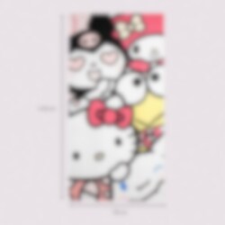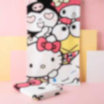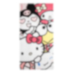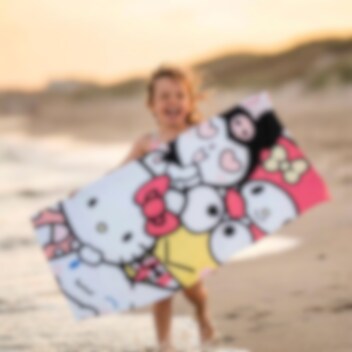 Deze kleurrijke badhanddoek is versierd met Hello Kitty en haar vrienden van Sanrio. Hier zien we personages zoals Kuromi, My Melody en Keroppi in een speels ontwerp dat een hit is op het strand of bij het zwembad.