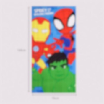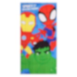 Spidey en zijn vrienden Iron Man en Hulk vergezellen je op je volgende baadavontuur. Deze kleurrijke badhanddoek is gemaakt van 100% sneldrogend polyester, waardoor hij gemakkelijk mee te nemen is naar zowel het strand als het zwembad.